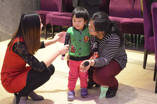主持人(左)与智邦宝宝及家人(右)现场互动