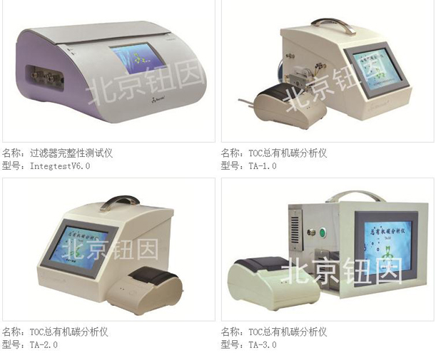 公司主要产品有:全自动过滤器完整性测试仪、总有机碳(TOC)分析仪、手套完整性测试仪、渗透压摩尔浓度测试仪、电子加热套、滤芯滤器,还有金属检测仪和紫外可见分光光度计等,已为国内大量制药企业、相关实验室提供了优质、便捷的服务。其测试方法均满足FDA、中国药典及GMP法规以及EP和USP的要求。全自动过滤器完整性测试仪及总有机碳(TOC)分析仪,在国内一直处于领先地位。其中,过滤器完整性测试仪已与国际上最先进的技术接轨。