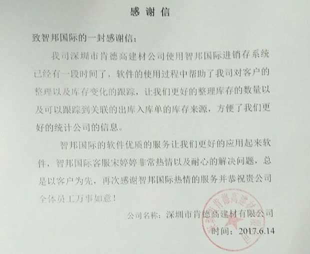 企业要想盈利,先要下手做好成本管理,除了采购成本,从客户、销售、库存到产品等,每个环节成本都不能忽视。相信在智邦国际进销存系统的协助下,广东深圳肯德高建材有限公司定能重新梳理和全面升级业务流程,建立集成化、规范化、一体化的客户、产品、供应商、库存等信息库,以更低成本、更高效率、更快反应,获得更多市场份额和客户信赖,全面提升核心竞争力。