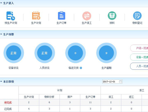 功能价值:智邦国际31.79版本新增生产工作台,让每个人瞬间拥有专属的生产助理,一个界面直观展示和实时监控生产相关常用单据、预警提醒、待办事宜、生产进度、人员状态、数据报表等,计划与实际实时对比,数据全部打通,单单关联,一查到底,生产管理游刃有余。