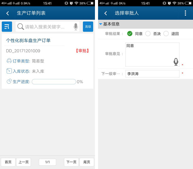 功能价值:智邦国际31.79版本App端新增生产审批,无论领导身在何处,拿出手机或平板电脑登录移动端,就能收到审批申请,还有实时提醒功能,避免错过重要事务,对着移动端说出审批意见,它就能自动识别和录入审批意见,多终端信息实时同步,是不是很方便?
