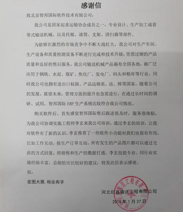 河北巨鑫输送工程有限公司智邦国际ERP系统实施现场