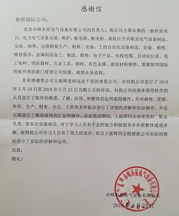赤峰东星电气设备有限公司智邦国际ERP系统实施现场