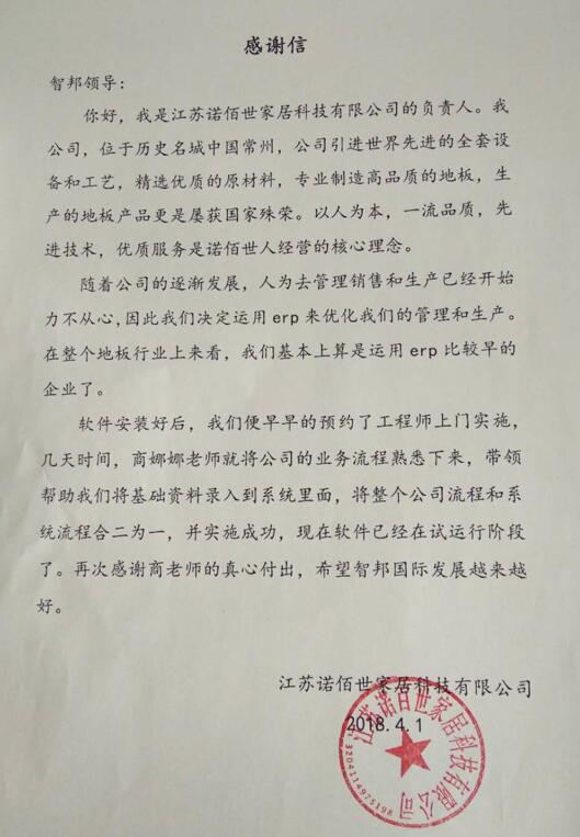 诺百世家居签约智邦国际ERP系统,实现来往账目都明了