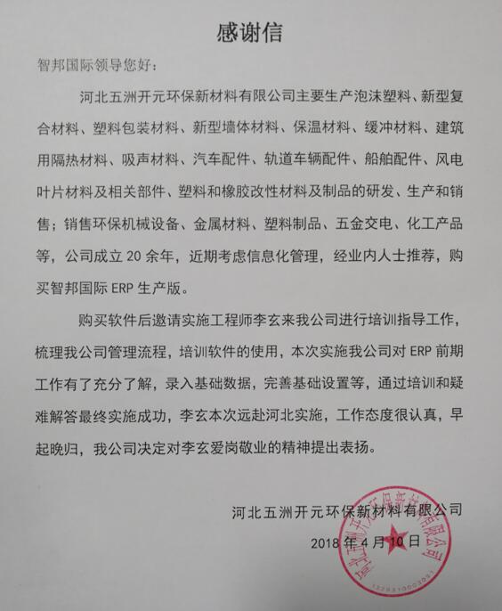 河北五洲开元环保新材料有限公司智邦国际ERP系统实施现场