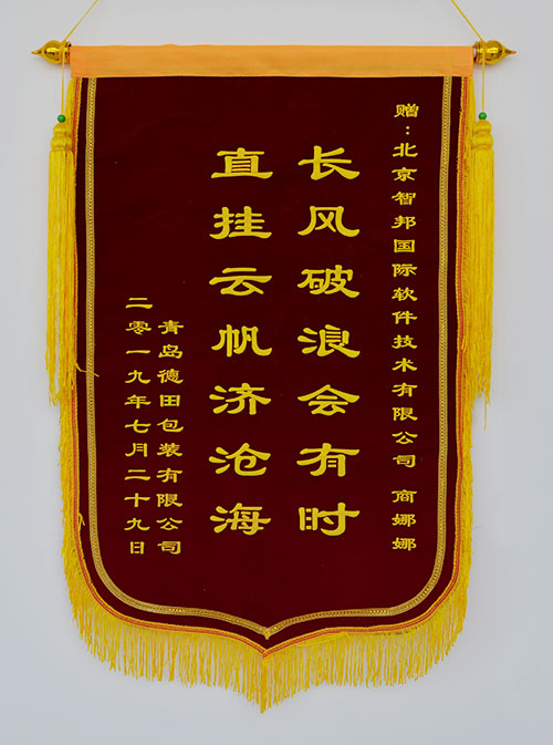 青岛德田包装有限公司锦旗致谢智邦国际ERP系统