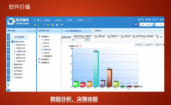 五、 智邦国际ERP系统支持老用户平滑升级,用户可自由选择是否更新,每个版本均采用统一风格、统一架构、统一操作模式,从根本上保证软件的可操作性,确保即使用户管理需求升级,也能尽快上手新软件。