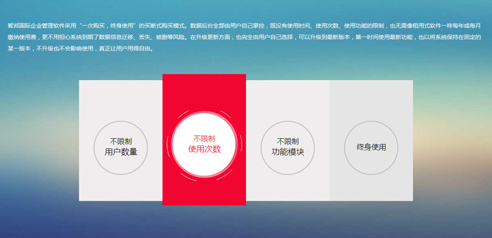 三、 系统持续平滑升级,在使用人员方面可以升级到无限用户数,助力企业人力资源发展;在业务方面,可跨版本升级,拓展多元业务,提升企业效益;在管理方面,系统支持软件功能持续升级,成为企业赢得市场的利器。