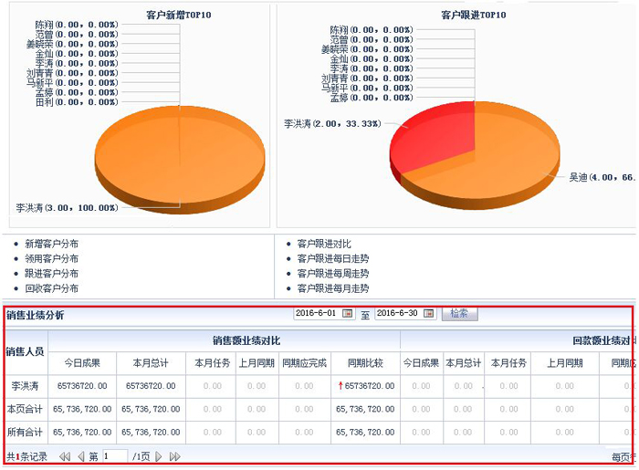 一、通过系统中的“销售漏斗”,能够清晰查看到各阶段的项目数和预计签单额,另外还能够快速计算项目的预计销售额和已使用费用。并且统一进行智能化的商机分析和维护,业务人员可掌握每项业务各个阶段的成功机率、预计成交额、洽谈进展等信息,还提供各项分析报表,为企业管理层和相关业务人员改进或调整销售策略提供数据依据。企业管理层也可通过销售分析中心中的“销售跟进分析”栏目,详细了解权限范围内销售人员当天的新增客户情况。在销售分析中心的“销售业绩分析”栏目中可查看销售人员的销售额情况和回款额情况。助力销售人员提高工作效率,管理层及时掌握第一手资料,继而提升企业整体效益。