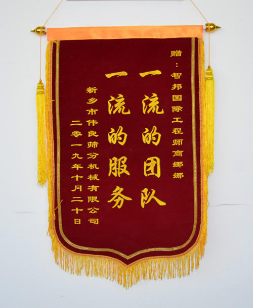 新乡市伟良筛分机械有限公司锦旗致谢智邦国际ERP系统