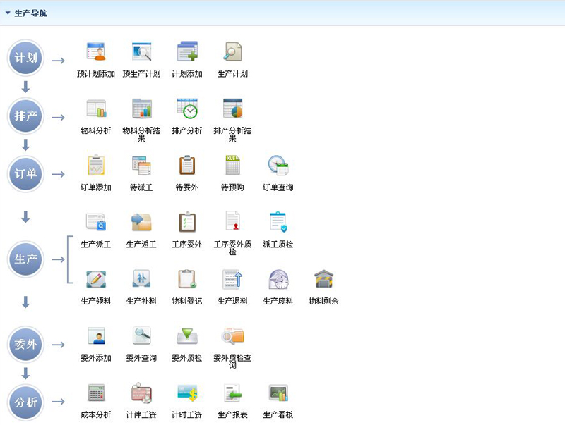 智邦国际ERP系统生产版包含了从营销、销售到生产再到库存的全流程一体化管理模块,在满足企业所需的同时还包含了人资、财务、办公等企业日常管理必定会用到的功能模块,着力于全方位协同助力企业构建集中统一的资源共享平台,实现精细化管理,加快企业转型升级的步伐,最终从“制造”迈向“智造”。