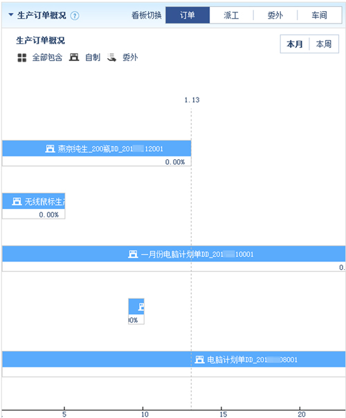 嫌弃一般的生产进度汇报都是密密麻麻的数字?智邦国际ERP系统中,根据时间点提供直观的进度条,即便不知具体数量,也已清楚各个订单的大体进展。还有各种折线图、饼状图、甘特图、负荷图等,用适合业务的方式直观呈现,再也不怕看不懂,弄不清了。