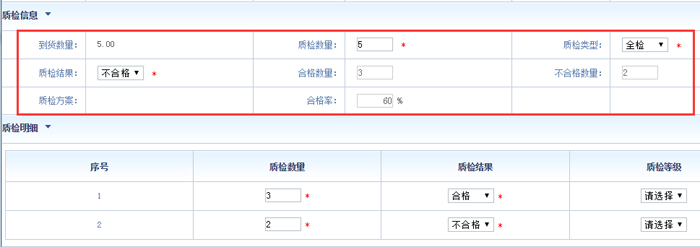 一、在系统库存->来料质检->质检列表->质检列表中可一键质检工单,也可批量质检,大幅提高质检效率。选择“质检类型”并编辑质检明细后,系统能自动计算出合格数量、不合格数量以及合格率,与此同时可在“质检报告”上传图片及附件等。从源头严密管控质量,大大降低供应商、原材料、零部件等不合格原因导致的质量问题,避免了各种不必要的风险和损失。如果质检明细结果存在“不合格”时,需要选择审批人进行审批。并且可以开启来料质检提醒功能,能够第一时间知道需要质检的产品,这样即使业务量大,质检员也能有效查看自己的待质检产品信息。实现企业内部各部门间信息的自动传递,及时地向各层次人员提供正确的产品及过程质量信息,以便及时做出响应,为实施全面质量管理提供有效的支持。