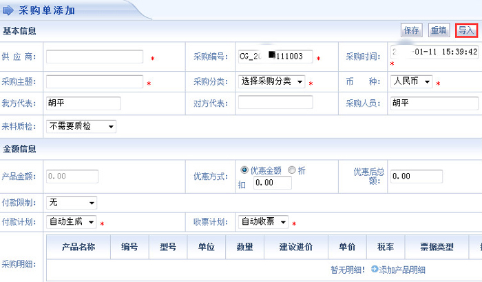 一、在系统中添加采购单有多个途径:直接一键添加,预购、询价、项目、合同生成采购以及采购复制等。如果采购单中的产品明细太多,也可以一键进行明细导入,提高业务人员工作效率,减少人为因素干预,同时在一定程度上避免了重复性录入造成数据错误的现象发生。并且在业务人员添加采购单之后,或者入库之后还是可以修改采购单价格的,在编辑采购产品明细时,可以快速查看到供应商的历史供货价格、采购建议进价和采购限价,助力业务人员提升采购效率与质量,从而为生产提速,加强成本控制,提高企业经济效益。