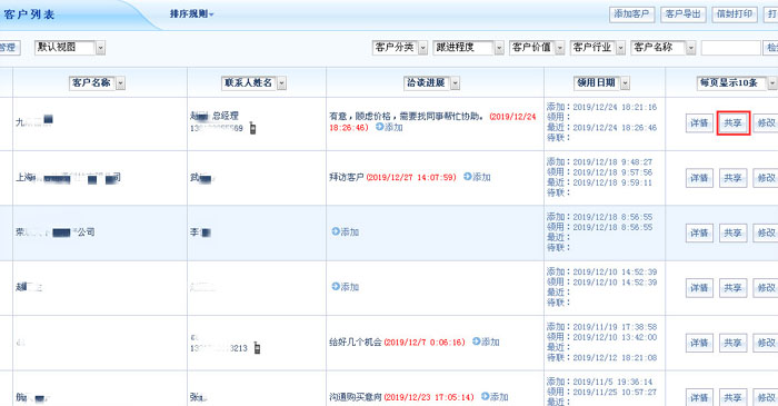 智邦国际ERP系统客户共享详情界面