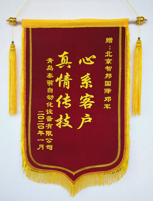 青岛泰萌自动化设备有限公司向智邦国际送致谢锦旗
