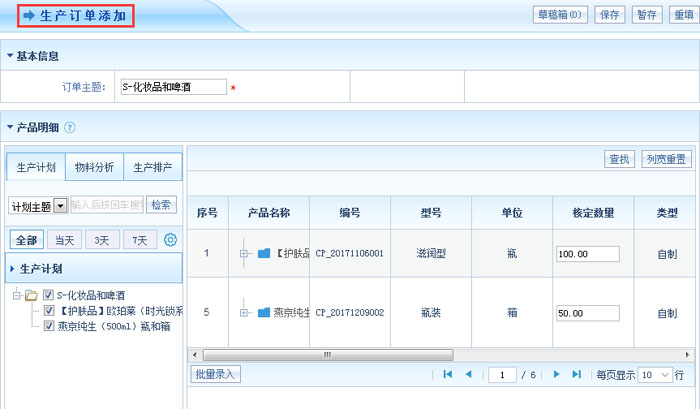 一、系统可以根据客户订单的需求量和交货期来自动进行生产安排,无需业务人员二次输入数据,确保数据的精准性与及时性,减少办公环节,助推企业高效生产。同时,系统支持直接录入生产订单,也支持由物料分析结果、生产计划、排产分析结果一键生成生产订单,简洁式操作助力业务人员轻松办公。此外,系统将订单、排产、物料分析、生产等环节紧密衔接,一键式自动流转,打破线上线下数据界限,助力企业构建生产智能场景化运营,实时掌控生产全程。