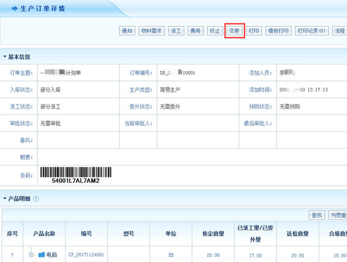 一、系统支持由生产计划、物料分析、排产分析一键生成生产订单,也可以根据生产需求手动录入生产订单,各环节互联互通,数据无需二次录入自动流转,可由生产订单一键转派工、预购、委外单,助力企业一体化管理生产各个环节,促进生产要素高效流动和合理配置,提高经济效益。在系统中还可以自动变更生产订单,方便业务人员在生产过程中及时更改产品和物料,随需生产,柔性变更,满足生产需求,提高订单准交率与客户满意度。