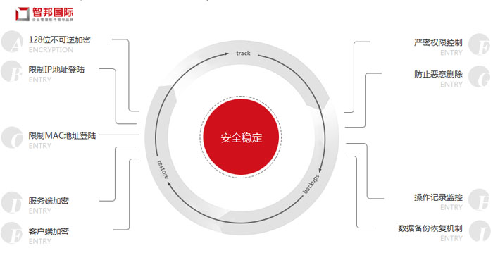 一、系统采用B/S架构,买断式服务,安全且稳定。企业在使用过程中,实际的数据信息既不存储在设备上,也不存储在智邦国际服务器上,而是会以安全的方式将其存储在自己的服务器上,并且自动进行安全高效的数据备份,对所有重要数据和参数都进行了128位不可逆加密,企业可以通过加密狗控制登录,或通过绑定IP、MAC地址控制登录,让财务等关键岗位操作更放心数据更安全。此外,系统还有防篡改、防删除、痕迹追踪等功能,操作自动留痕,删除数据自动记录,一键修复,从多个角度出发全面保护企业数据,助力企业高效办公。