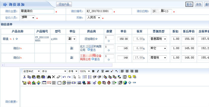 一、在系统中,支持由生产订单转预购,继而预购转采购,同时也支持手动添加,预购、询价、项目、合同等单据一键生成采购,提高采购效率与准确性。并且可扩大询价比价范围,多家供应商智能对比,助力业务人员快速选择合适的供应商,大幅降低采购成本。同时,业务人员可线上添加洽谈进展,记录采购跟进情况,信息透明化呈现,确保实时跟踪采购全程,各部门相互监督,避免出现暗箱操作等情况,提高物资采购质量,降低采购价格,及时按单供给,助力生产如期进行,高效完成。