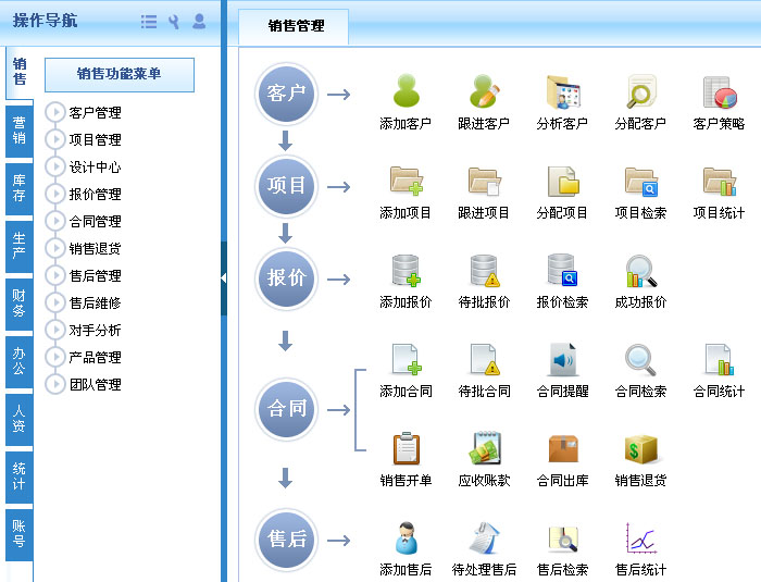 智邦国际工程师在了解到企业基本需求之后,为其推荐演示了智邦国际ERP系统生产版,企业管理层对于系统功能表示认可,经过开会讨论最终决定购买智邦国际ERP系统生产版。智邦国际ERP系统生产版包含生产、销售、库存、财务、办公及人资等功能模块,其中对于销售环节数据的智能统计分析,界面图形化生动呈现,更是助力企业加速成交订单,提高销售业绩与企业经营效益。