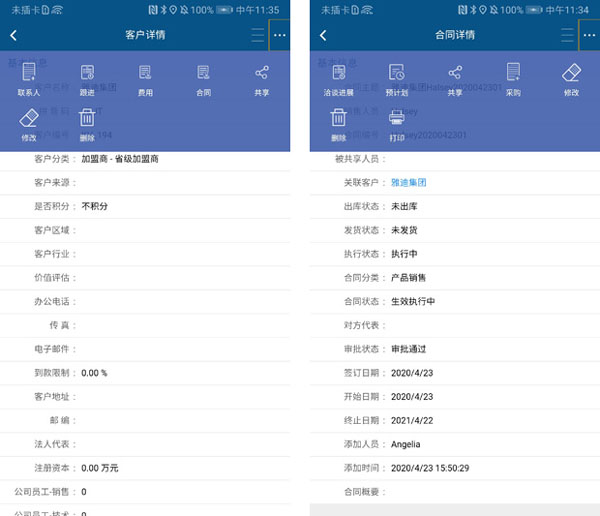 APP端客户、合同一键协同,自动流转