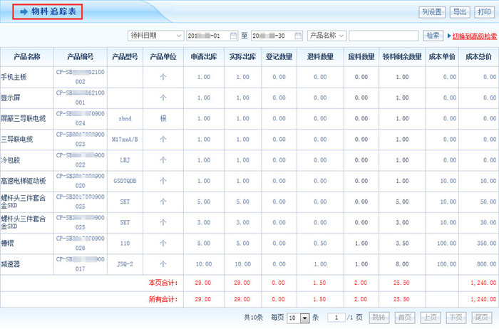 一、在系统物料管理环节,支持企业线上集成化管理领料、补料、退料、废料等环节,并且各环节智能互联,一键流转,业务人员可由派工、返工、整单委外和工序委外一键生成生产领料单,在领料完成后,可以完成退料、废料、出库等操作,无需业务人员重复性录入基础数据,提高单据流转效率与精准性。同时,系统会自动对各环节录入数据进行智能化统计分析,为企业管理层及相关业务人员提供有力的数据支撑,助力精准决策,通过物料追踪表,让企业可从出库产品维度,实时追踪产品的申请数量、出库数量、退料、废料、登记以及领料剩余的数量,实现敏捷运营。
