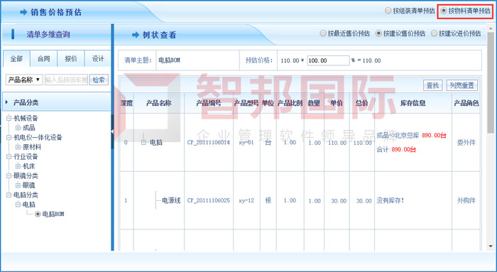 智邦国际工程师在了解到企业日常管理需求后,为其推荐演示了智邦国际ERP系统生产版,企业管理层认为系统功能可以满足企业管理所需,在经过多家对比之后,最终决定与智邦国际达成合作。智邦国际ERP系统生产版包含生产、销售、采购、库存、人资、办公等功能模块,其中销售环节的一键销售预估,更是为销售人员精准报价提供有力的数据支撑,提高客户满意度以及签单成功率。