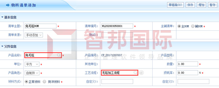 智邦国际工程师在了解到企业基本需求之后,为其推荐了智邦国际ERP系统生产版。智邦国际ERP系统生产版从职能部分架构层面对企业管理进行了精细划分,将生产管理与客户、项目、营销、库存、售后、财务及人资等管理模块协同工作,其中在BOM环节,更是支持企业主辅BOM按需选配,提升制作效率的同时,减少重复性和繁琐操作,实现高效生产。