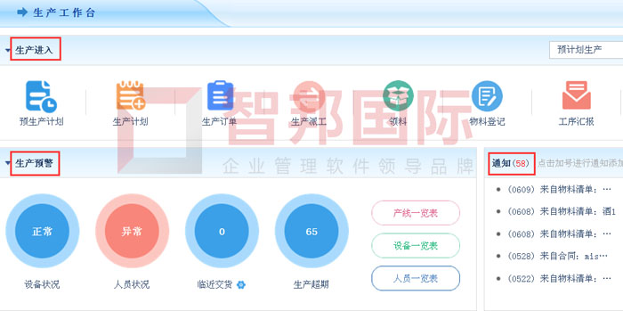 智邦国际ERP系统智能生产工作台部分界面