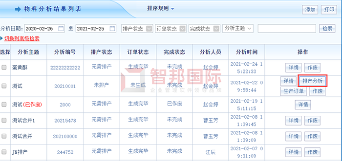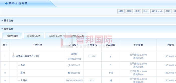 为更好的帮助企业做好物料需求分析工作,智邦国际ERP系统支持按实际需求自定义设置物料分析规则,物控人员可以根据市场需求或者客户订单进行分析,从而安排生产进度,为业务部门做好充分的准备,保证业务部门数据的及时性与准确性。在企业中物料分析是根据产成品的BOM结构来分析计算订单中成品所需物料的总量、并结合现用库存数量、包括:在途、预定、在制的数量进行核算分析。因此企业对物料分析结果需要从多维度来呈现,分析结果一目了然。