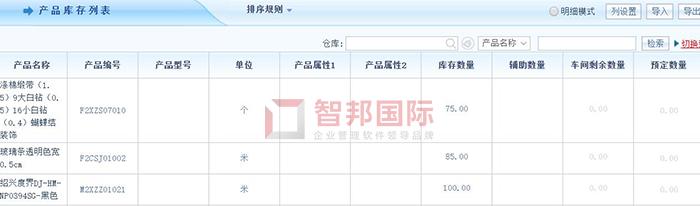 对于统计分析功能,智邦国际ERP系统支持从销售、营销、采购、库存、生产、财务、人资等多个维度进行统计分析。在库存统计分析界面中,对于库存列表,系统支持从库存数量、辅助数量、车间剩余数量、预定数量、在途数量、冻结数量、可用数量等多维度进行分析汇总,信息可自动进行分析汇总,并可按照仓库和产品名称、产品编号等进行检索查询,数据信息一目了然。