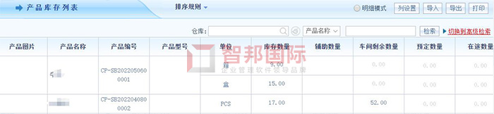 智邦国际ERP系统库存管理功能,可以设置多个仓库,以及按需设置、修改仓库分类,为了减少业务人员手动录入的麻烦,节约录入时间,提高工作效率,还支持一键快速导入仓库,同时可以设置可用库存计算方式,系统会根据计算方式自动进行计算,为企业实时呈现仓库可用库存。此外,各部门人员可一键查看实时库存,在汇总模式下能够看到产品型号、库存数量、在途数量、所在仓库等信息。