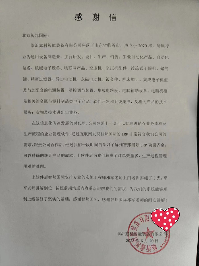 近日,临沂鑫科智能装备有限公司签约智邦国际,希望通过智邦国际ERP系统的使用,建立信息共享、智慧协作平台,科学掌控生产成本,为企业战略提供正确的数据支撑。
