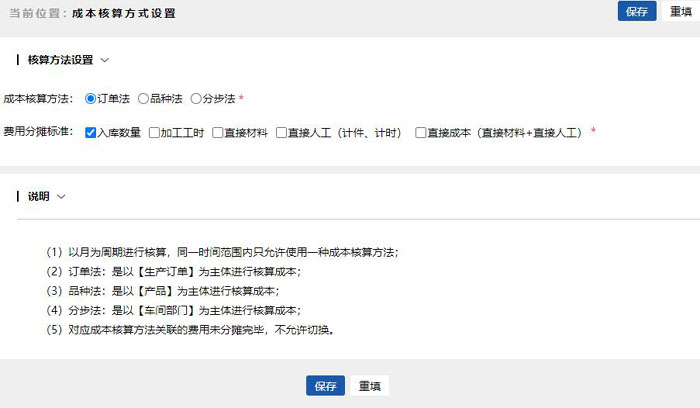 智邦国际ERP系统设有智能化成本核算功能,支持一键设置不同费用分摊标准,可自由选择成本核算方式,比如,以生产订单为主体进行成本核算,则选择订单法;以产品为主体进行成本核算,则选择品种法;以车间部门为主体进行成本核算,则选择分步法。系统全程智能核算生产成本,过程简练、结果精确。