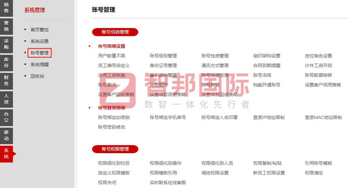 智邦国际ERP系统设有账号级别管理、账号性质管理等功能,个性化自定义设置功能让流程畅通无阻,将每个岗位细化分工,促使其权责分明、各司其职,打造特色化组织架构,满足企业不同岗位角色需要。另外,企业员工可根据自身岗位业务需要DIY工作台内容,栏目、内容随意拖动,大大方便员工使用,提升办公效率。
