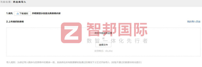 智邦国际ERP系统供应商导入(局部图)