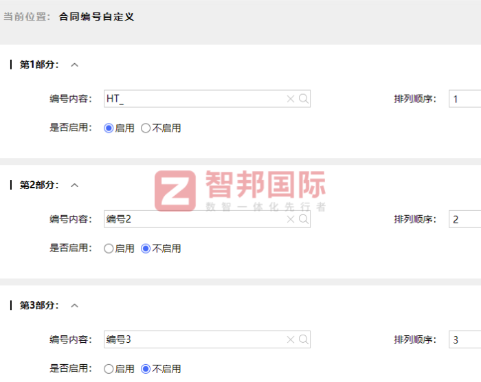 智邦一体化ERP天工系列合同编号自定义(局部图)