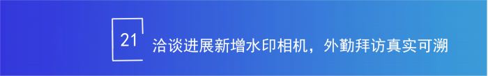 功能价值:32.20版本新增洽谈进展全新升级水印相机功能,拍摄时自动携带时间、定位、洽谈人等不可篡改信息,有效佐证外勤洽谈真实性,形成可留痕、可追溯的业务凭证,强化销售过程管控与业务合规性,提升团队协同效率与管理可信度,为企业精准决策提供有力支撑。