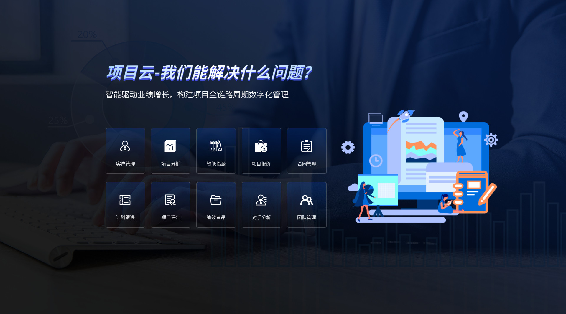 - 多位展示实时项目跟进数据、动态分析阶段趋势