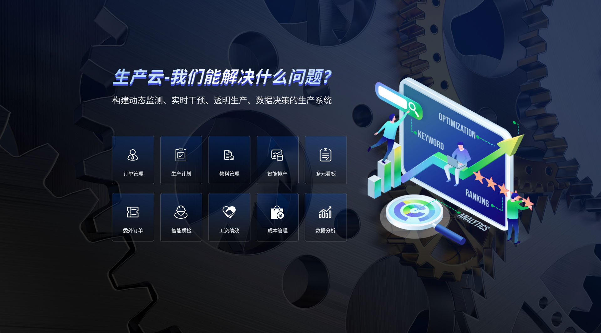 从生产订单、物料、设备、计划、排产、报工、质检、成本到决策等,实现一站式协同制造